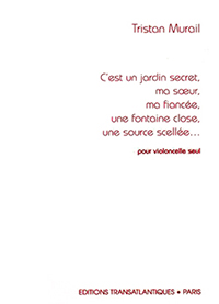 ln C'est un jardin secret, ma soeur, ma fiancée, une fontaine close, une source scellée... (1976), the form grew out of a set of ambiguities and progressive transformations between different types of sounds: so-called "natural" harmonic sounds (obtained by touching the string lightly at the nodal point), molto sul ponticello sounds (obtained by playing close to the bridge, which releases strong harmonic partials), ordinario, etc... The tempo is never stable but undergoes constant acceleration or slowing down (the model, in this case, is less western European than the Balinese gamelan!). The piece was originally written for solo viola, to celebrate the marriage of two friends, which explains the title (a quotation from the Song of Songs). Later, the Russian cellist Viktoria Gantchikova suggested that l make a version for her instrument with her help - a transcription that highlights certain aspects of the piece. Out of necessity, all of the natural harmonics were transposed down an octave, While the more singing parts remained in the original range, therefore taking advantage of the cello's highly expressive upper register.